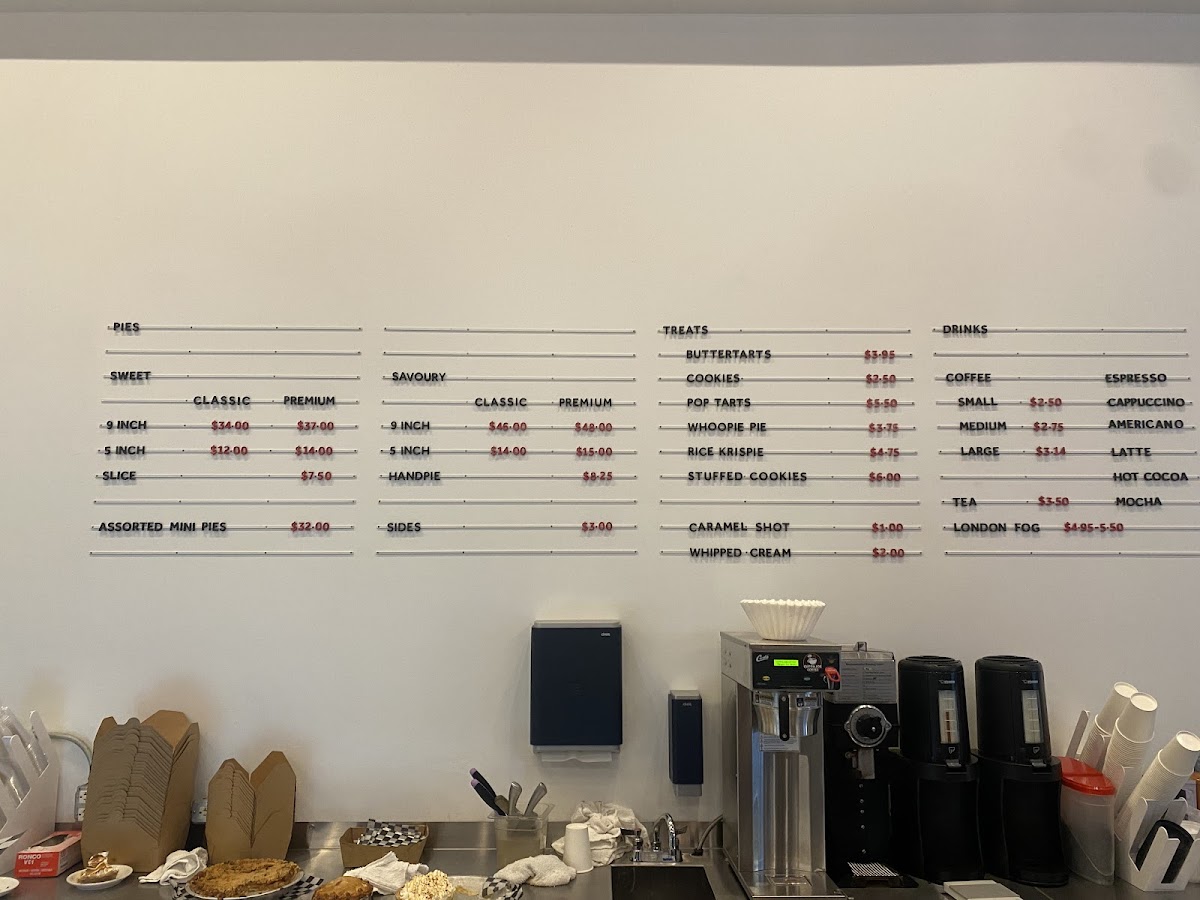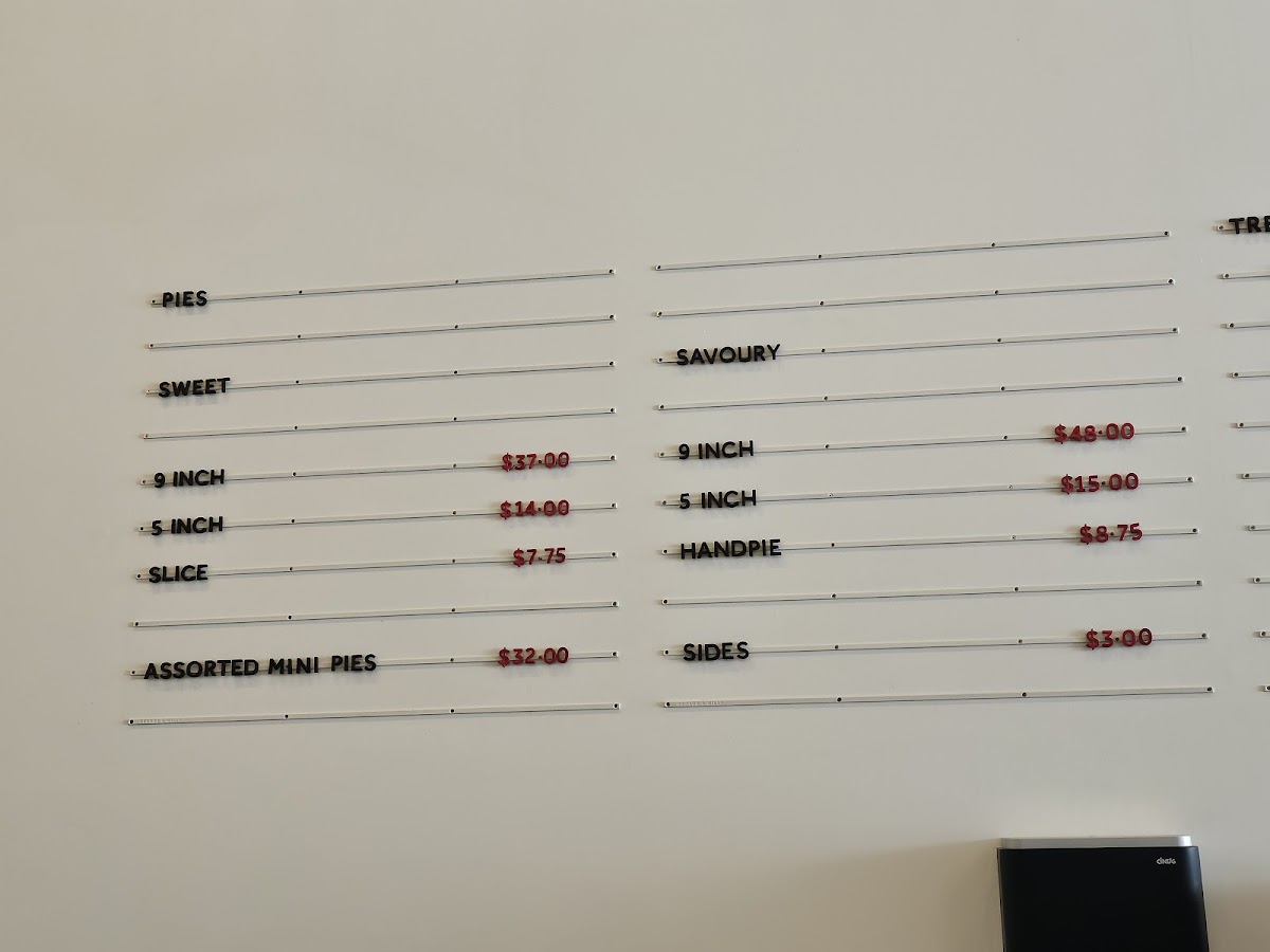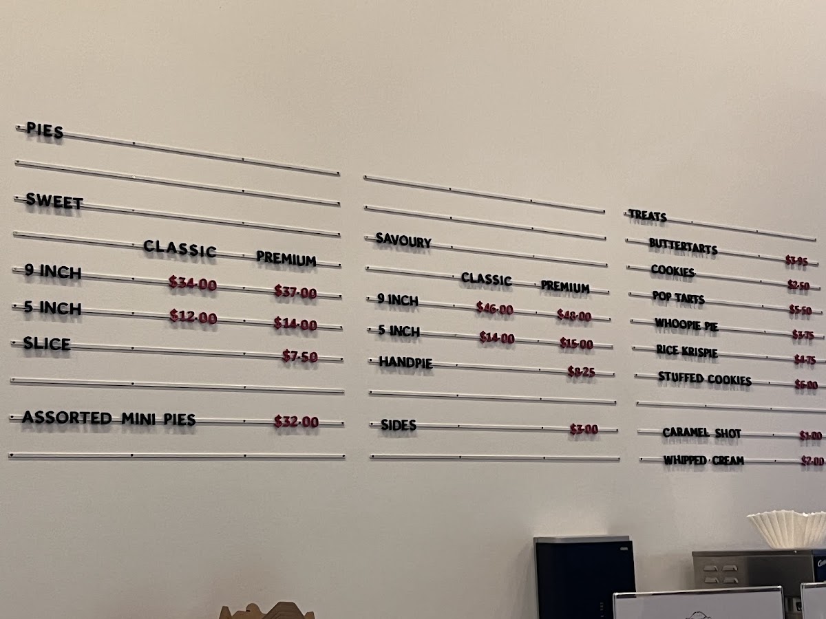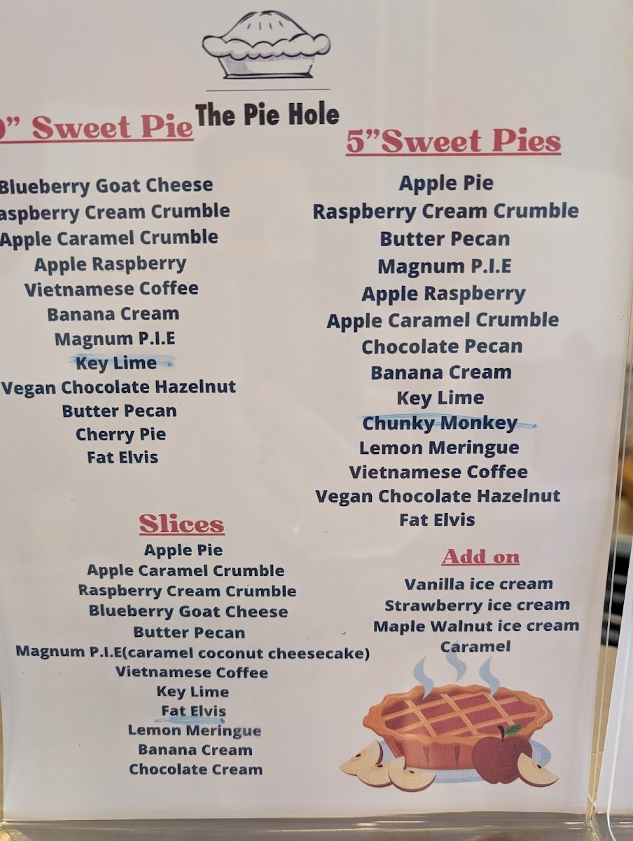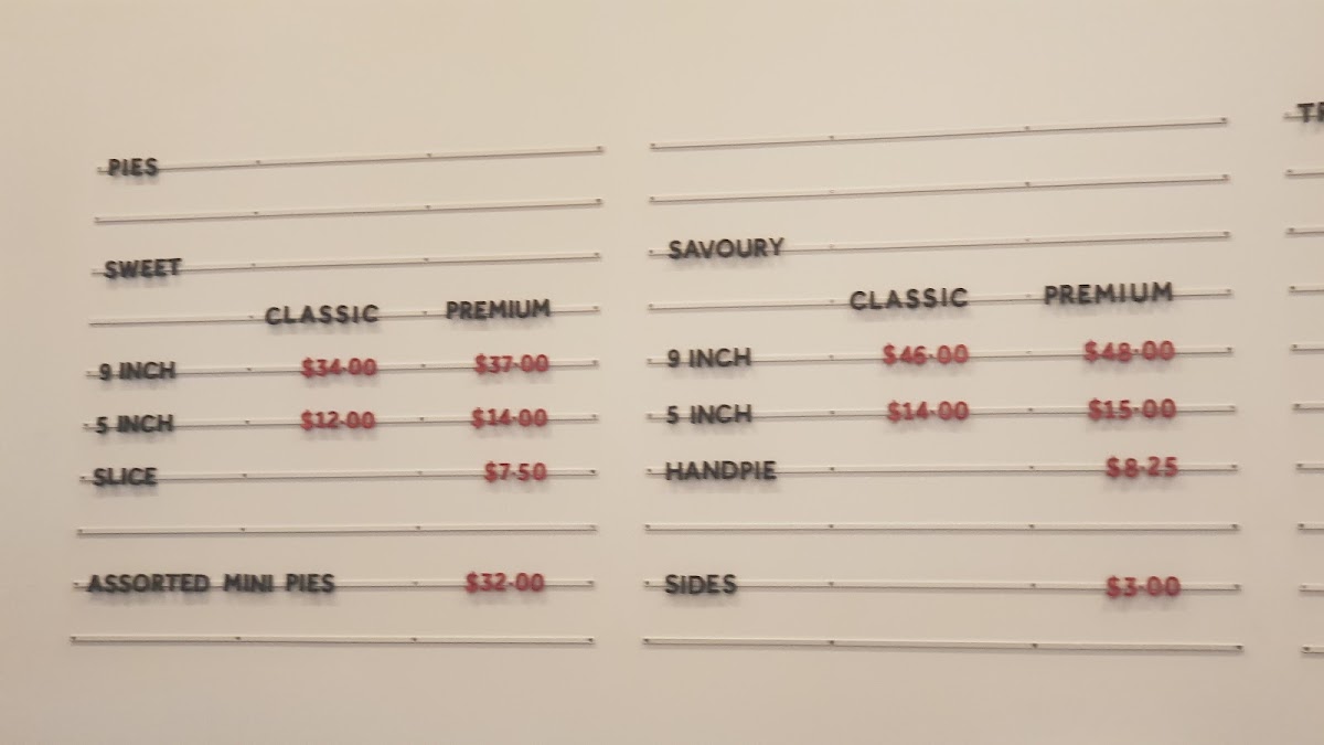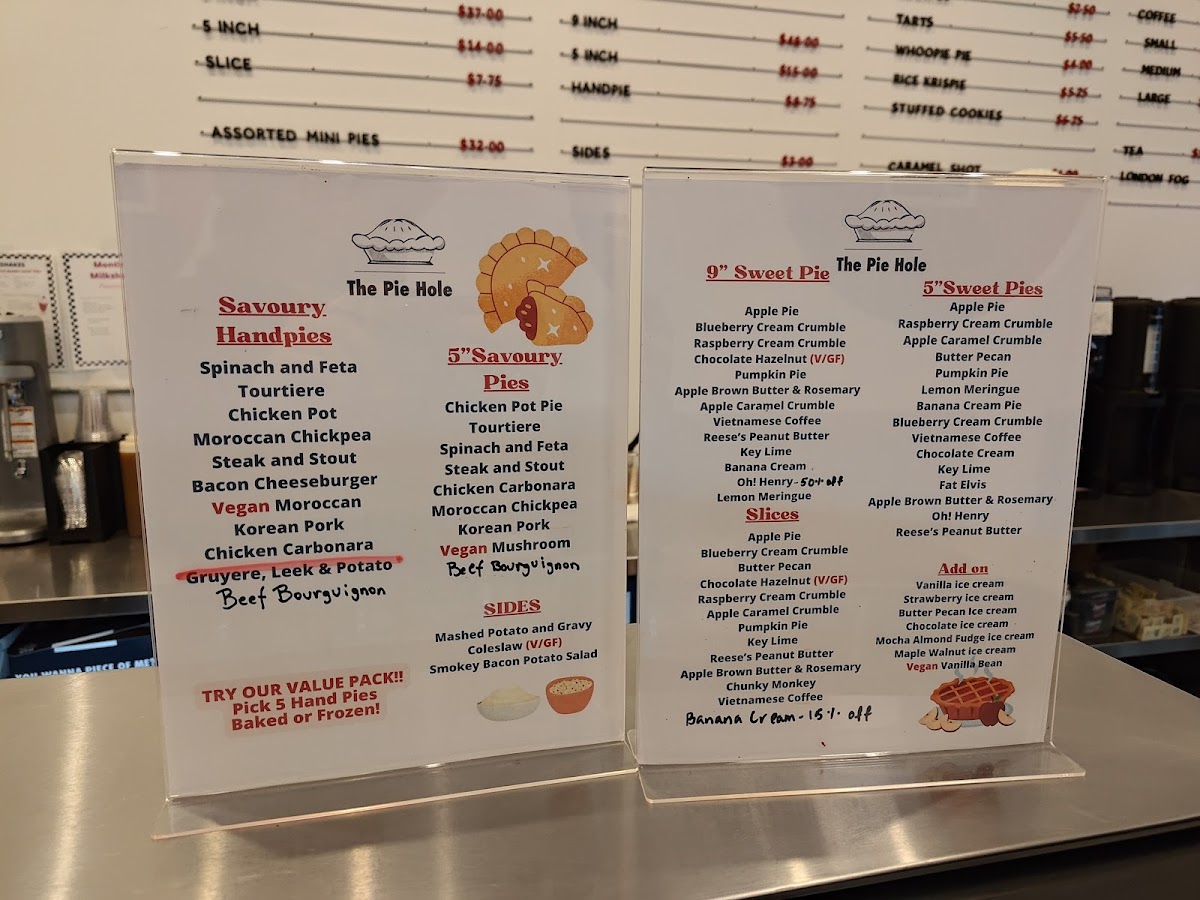 This menu is well-suited for breakfast, light meals, coffee breaks, or casual dining. Customers can opt for quick takeout orders or enjoy their selections on site. The variety of savory and sweet pies alongside specialty drinks allows for a range of options depending on the time of day and appetite.